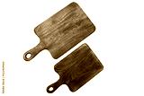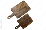 Closeup bigger and smaller cutting boards isolated on white background. Set collage wooden cutting boards. Mock up, copy space. Kitchen tools. workspace flat lay, top view. Cooking workplace.