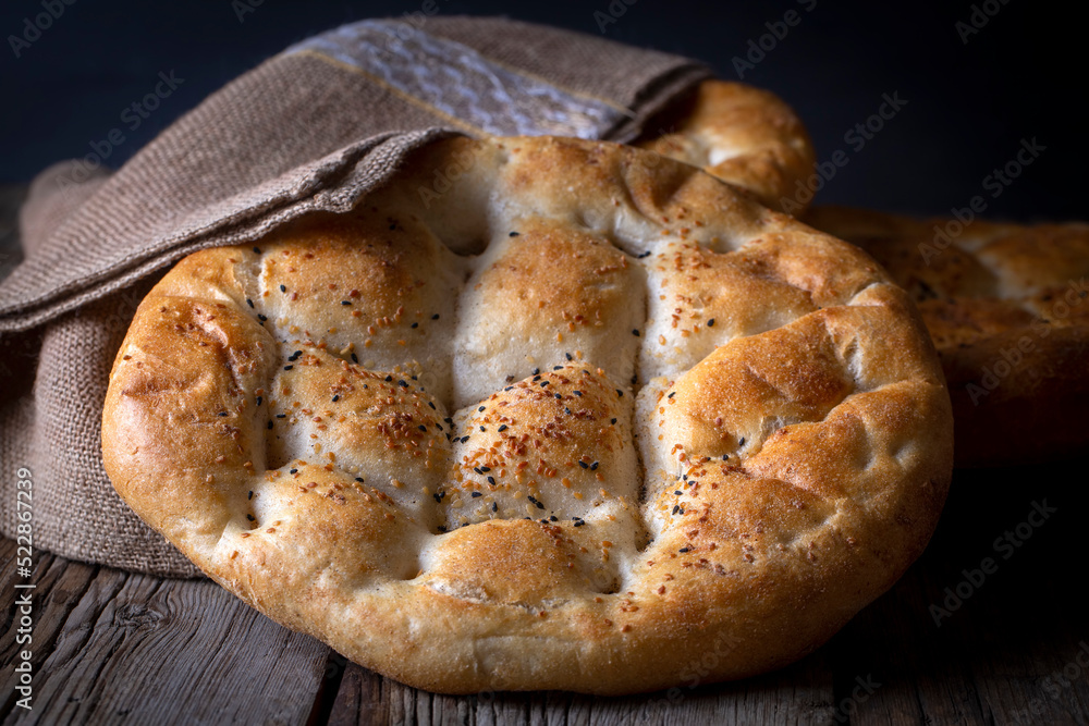 Ramadan Pita (Turkish name; Ramazan Pidesi) Traditional Turkish bread for holy month Ramadan