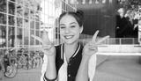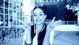 people, gesture and education concept - happy smiling teenage girl showing peace signs over city street or school yard background