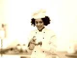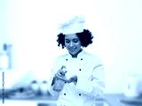 cooking, culinary and people concept - happy smiling female chef applying hand sanitizer or liquid soap over restaurant kitchen background