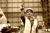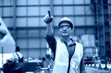 Asian man engineer working hard in factory , worker employee hard hat safety control machine factory