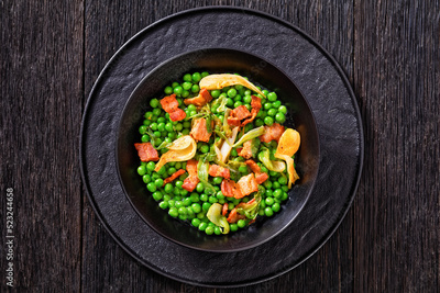 petits pois, french dish of garden green peas