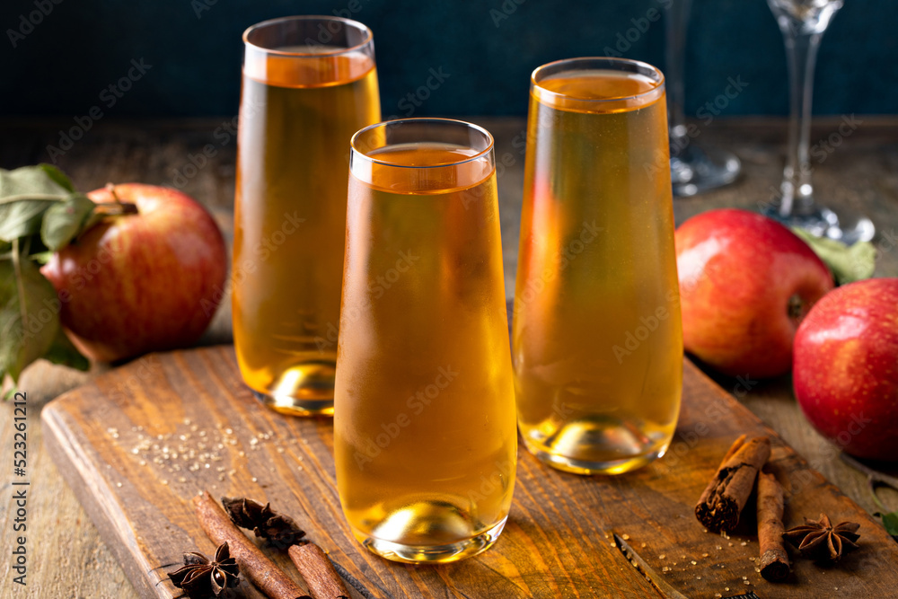 Apple cider mimosa for fall brunch, autumn cocktail idea