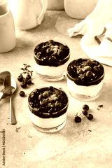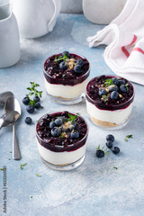 Blueberry cheesecake in a jar with graham cracker base