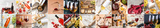 Collage of delicious wine with snacks, aerator, decanter and corkscrew