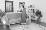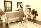 Housekeeping concept, Housemaid wear gloves and hold mop with cleaning supplies for cleanups house