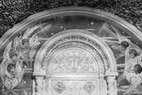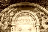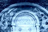 Mosaic panels depicting flying seraphim in chapel-tomb of Paskevich (1870-1889 Years) in city park. Famous local landmark Gomel, Belarus. Rumyantsevs and Paskeviches park. Close up.