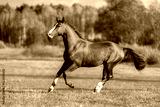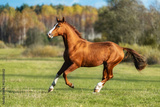 Beautiful red horse running in the field in autumn. Don breed horse.