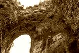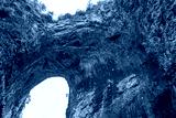 Beautiful Natural Bridge in Virginia covered by green lush trees and a group of visitors below