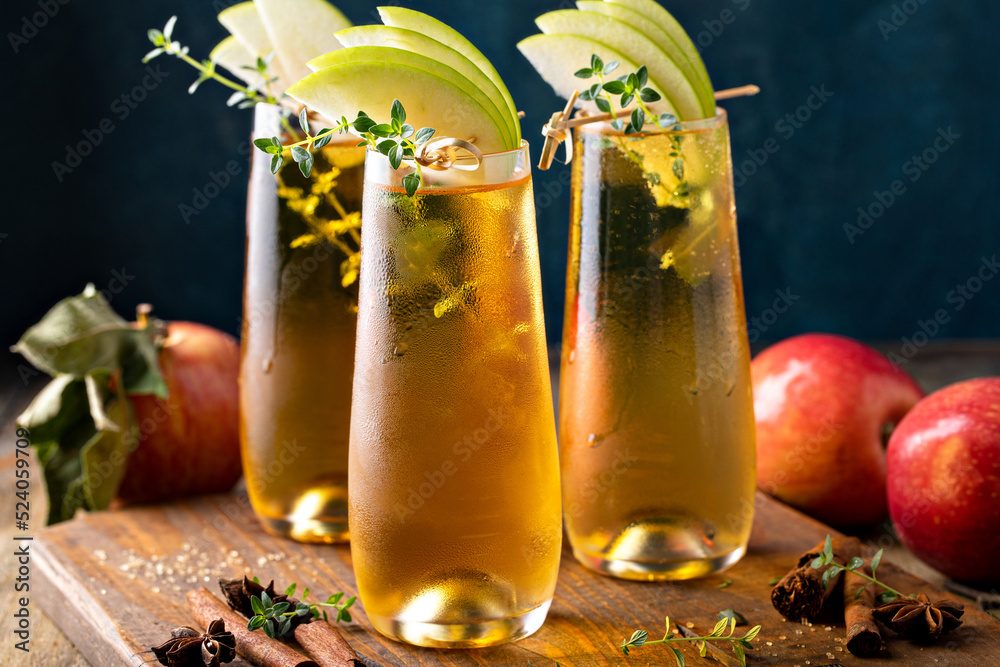 Apple cider mimosa for fall brunch, autumn cocktail idea