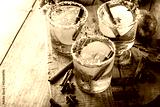 Apple cider margarita with brown sugar rim and cinnamon stick