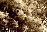 Ligustrum lucidum tree with many white flowers. Wax-leaf privet tree in bloom