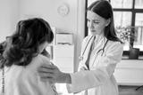 medicine, healthcare and people concept - female doctor comforting to sad woman patient at hospital