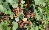 Many bunches of Pinot Gris grape, yellow pinkish variety, hanging on vine just before the harvest.