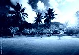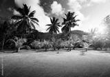 field of grass and coconut palms on Praslin island, Seychelles