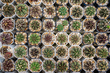Group of Gymnocalycium cactus collecting in greenhouse.