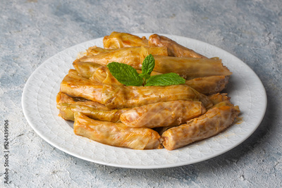 Lahana Sarma, Turkish traditional food,a boiled cabbage leaf that is formed into a roll with a stuffing of rice