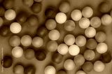 Abstract colored balls background. Multi-colored taw toy scattered on bright paper. Base for design nice backdrop, wallpaper, poster. Noisy surface texture