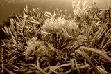 Red alga Plocamium cartilagineum and green alga Codium tomentosum, underwater in the Atlantic ocean, Spain