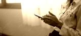 Close-up of a woman's hand using a mobile phone at home. Search ideas or social networks.