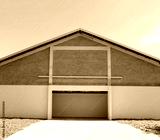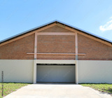 Modern warehouse building exterio decorated with red bricks wall.