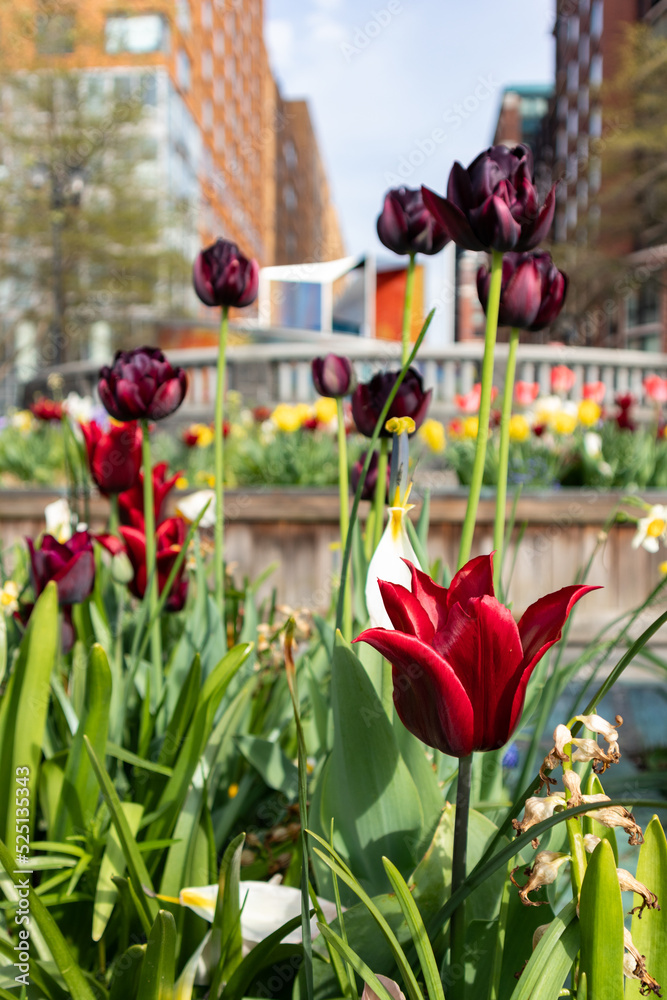 Garden of Colorful Tulips during Spring at a Park in Tribeca of New York City