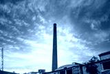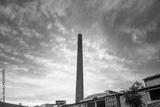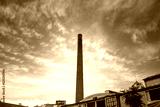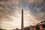 Selective blur on Broken Red brick chimney from an abandoned factory at dusk, with sun, dating back from the industrial revolution in a bankrupted industry.....