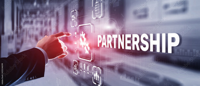 Partnership of companies. Collaboration. Business Technology Internet concept
