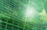 Sustainble green building. Eco-friendly building. Sustainable glass office building with tree for reducing carbon dioxide. Office with green environment. Corporate building reduce CO2. Safety glass.