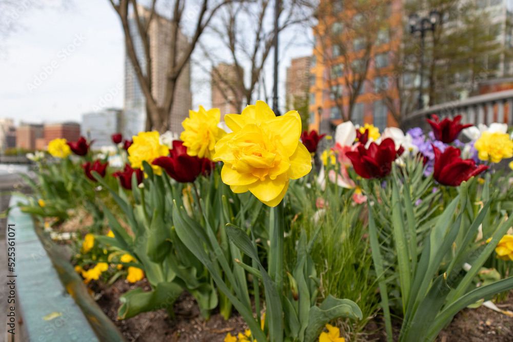 Garden of Colorful Tulips and Flowers during Spring at a Park in Tribeca of New York City