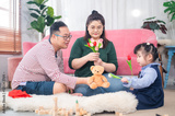 father mother daughter, Happy family with daughters playing at home and weekend for family