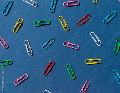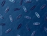 Colorful paper clips on the blue background seamless pattern