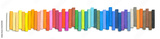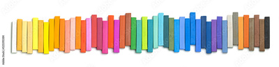 Colorful chalk pastels in an Up and Down Pattern, on white background, arranged as rainbow spectrum