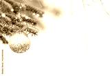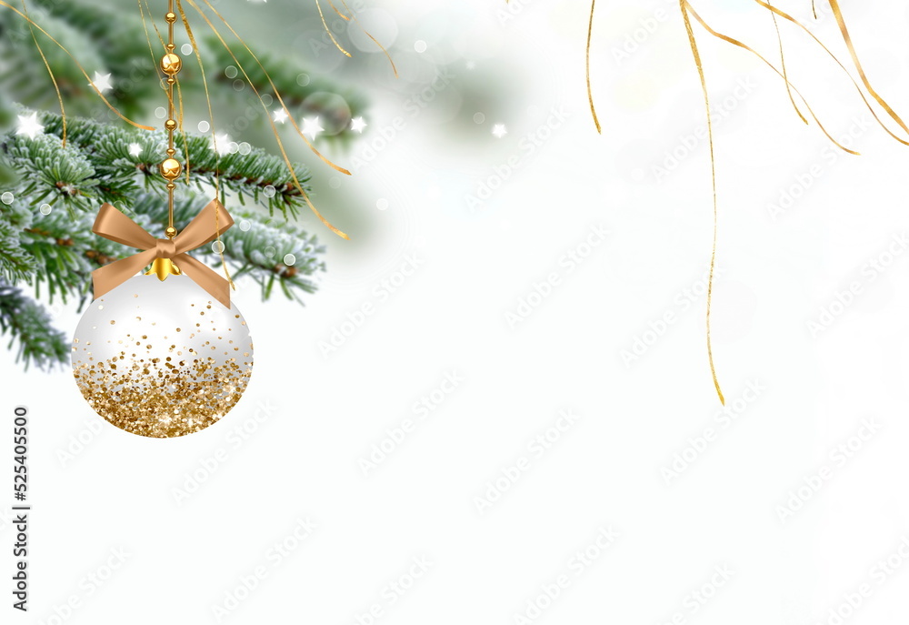 Christmas ball and green pine tree branch with cone winter isolated white festive background copy space template banner