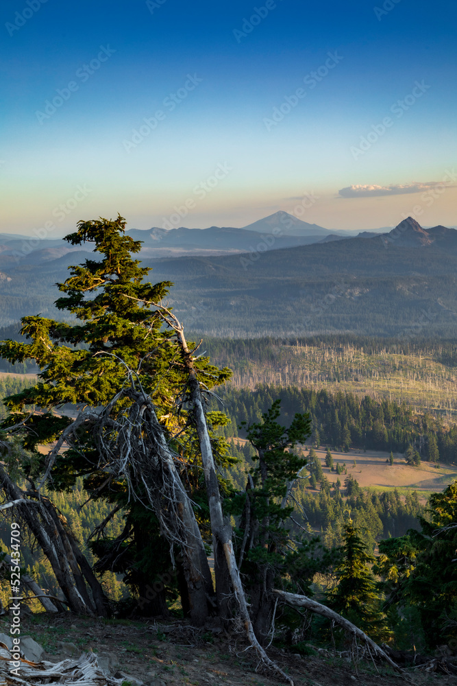 dramatic sunset in Crater Lake national park in Oregon