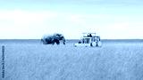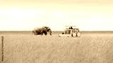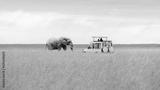 African elephant walking in savanna and tourist car stop by watching at Masai Mara National Reserve Kenya.
