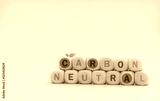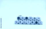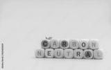 Carbon neutral concept. Wooden cubes with carbon neutral words on blue background. CO2 neutral web banner. Carbon neutral corporate business long term strategy. Global carbon neutrality concept.