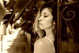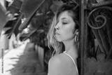 Closeup of pretty young caucasian woman looking away standing outdoors. Blonde girl with piercing wears summer clothes. Rest time concept