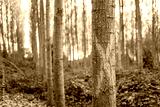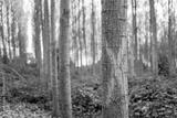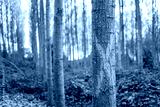 Shallow focus of a sprayed cross seen on a young tree in a plantation that has a fast moving disease. The tree will be felled.