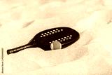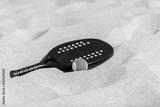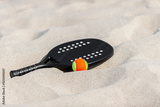 Racket and ball on the sandy beach. Summer sport concept. Horizontal sport theme poster, greeting cards, headers, website and app