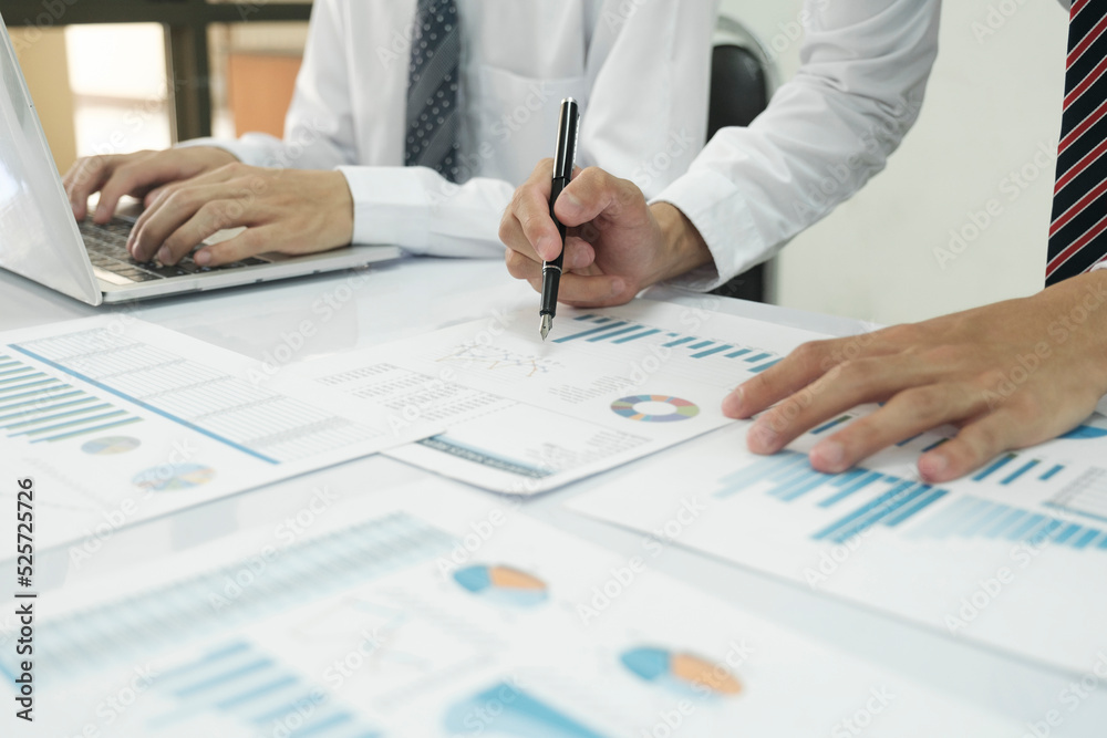 Close up asisan businessman teamwork meeting and discussing the investment data and report graph.