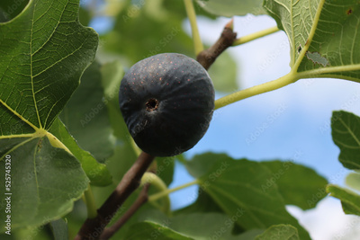 Ripe purple figs on tree in the garden. Ficus carica tree on late summer