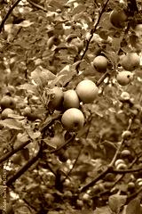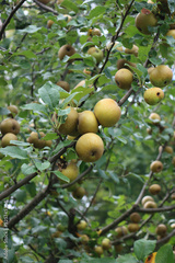 Golden Russset (italian Ruggine) apples growing on branches in the orchard on late summer