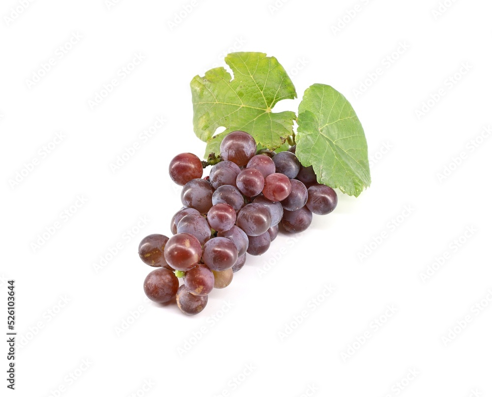 Bunch of Pinot Gris grape with pinkish purple berries, on white background