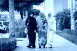 Arabic women wearing traditional abaya dress meeting and having fun in Dubai - Happy beautiful muslim females bonding outdoors in the city
