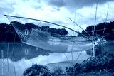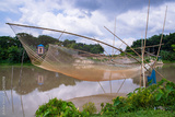 Traditional Fishing net Vessel in the river water by Bangladesh