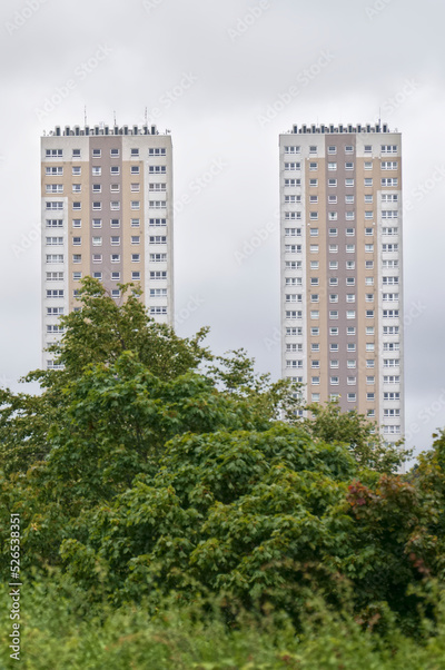 Council flats in poor housing estate with many social welfare issues in Clydebank