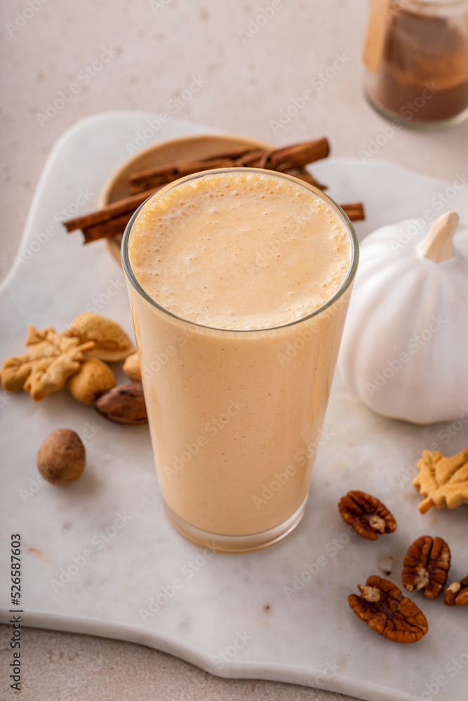 Pumpkin pie smoothie with fall spices and pumpkin puree