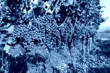 Row of Cabernet Franc grapes hanging on vine in autumn, just before the grape harvest