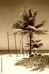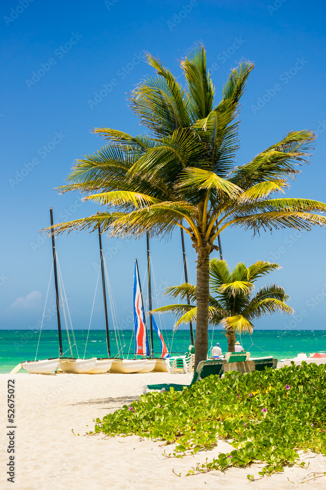 Pam and boats on the beach of Varadero in Cuba